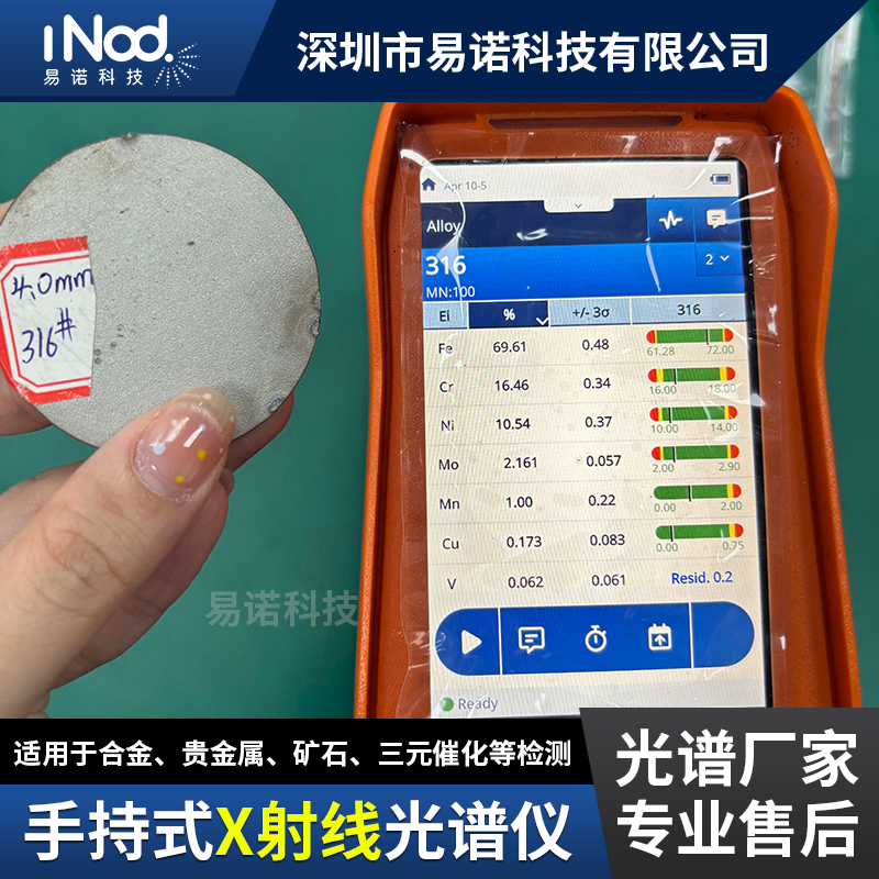 儀器校準:每次檢測前,需用儀器配套的 “標準樣品”(如316金屬標樣)進行校準 —— 尤其是長期未使用或更換檢測場景后,校準能確保儀器的檢測精度,避免因儀器漂移導致結果偏差。