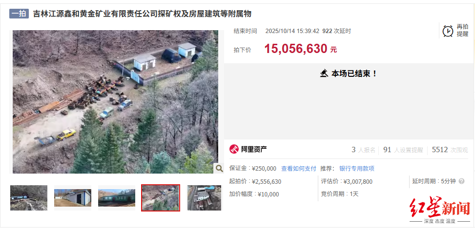 成交價1500萬元:出價931輪,溢價率達489%!吉林一金礦探礦權等被拍賣